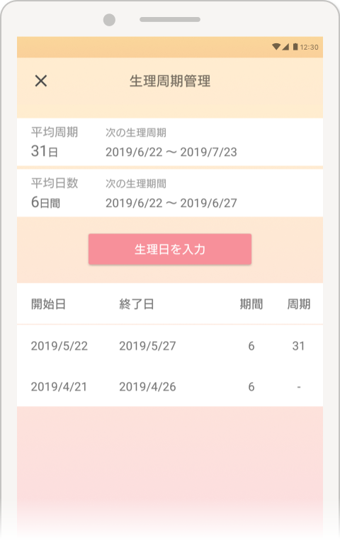 • 無料のアプリで生理の開始、終了を記録して次の生理日や月経のサイクルをしっかり把握、管理したい!